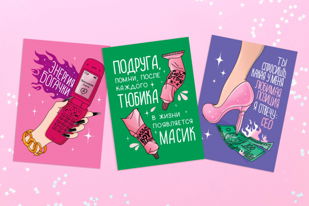 Собрали три дизайна в один набор, чтобы каждой подружке досталось по открытке!