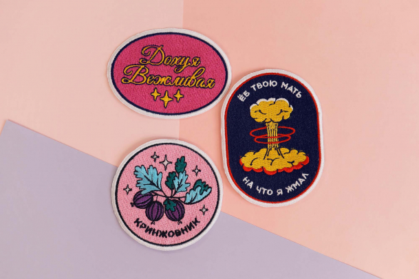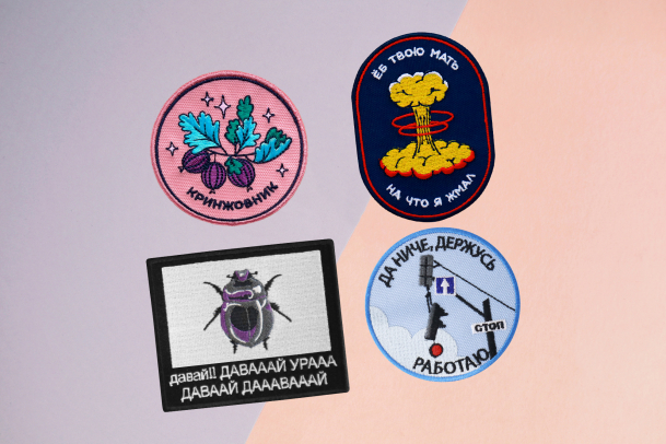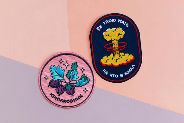 Набор шевронов с клеевой основной. Принты нанесены методом вышивки. Надписи: "Ёб твою мать куда я жмал", "Кринжовник", "Да ниче, держусь, работаю" и "давай!! ДАВАААЙ УРААА ДАВААЙ ДАААВАААЙ"