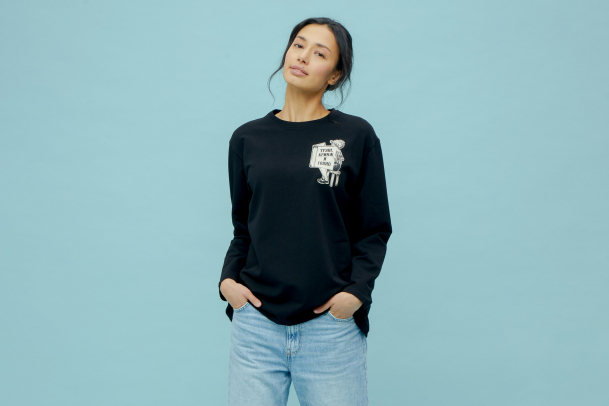 Мда, это кринж… Или трэш… Или говно… В вашем гардеробе должен появиться этот лонгслив для таких случаев. Он скрасит ситуацию, потому что мягкий, красивый и практически не мнётся. У кофты свободный крой, она приятно касается кожи и не сковывает движения. А принт остаётся ярким и не трескается после стирки.