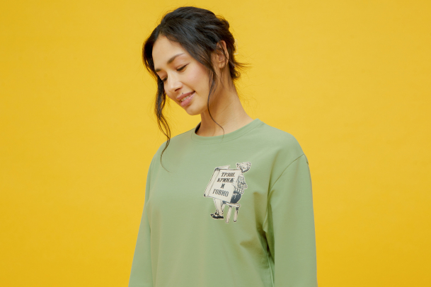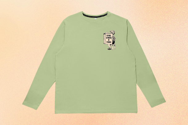 Мда, это кринж… Или трэш… Или говно… В вашем гардеробе должен появиться этот лонгслив для таких случаев. Он скрасит ситуацию, потому что мягкий, красивый и практически не мнётся. У кофты свободный крой, она приятно касается кожи и не сковывает движения. А принт остаётся ярким и не трескается после стирки.