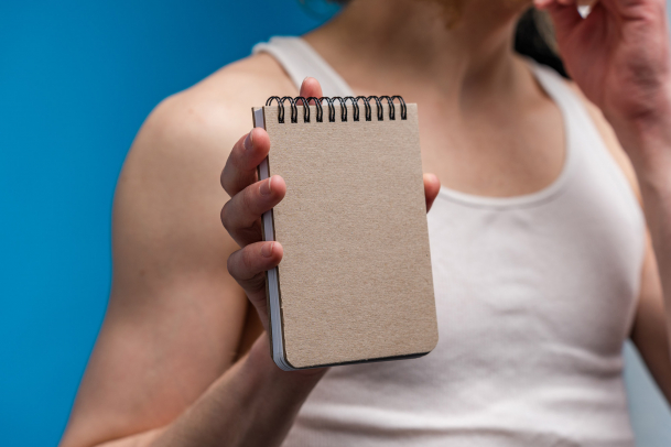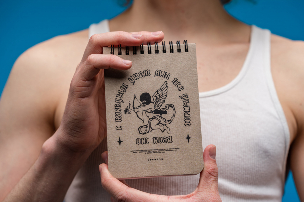 Запишите ответ в блокнот в точку формата А5 с плотной бумагой. Он идеально подходит для записей и зарисовок. Из скетчбука на пружине удобно вырывать листы, если захочется повесить заметку на стену. Чтобы вам было удобно делать записи в пути, мы сделали обложку и оборот из плотного картона.