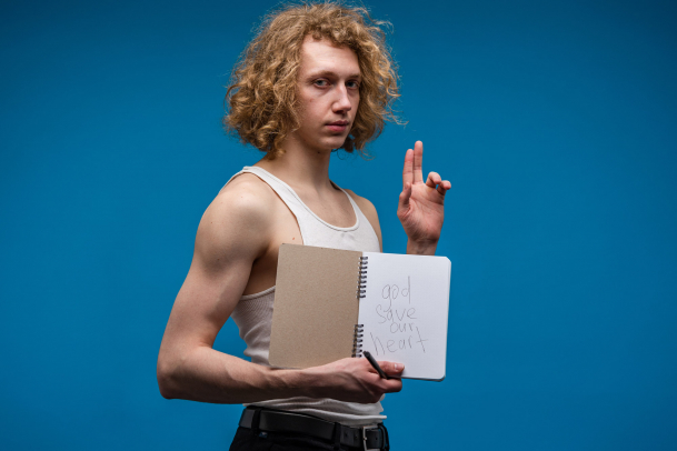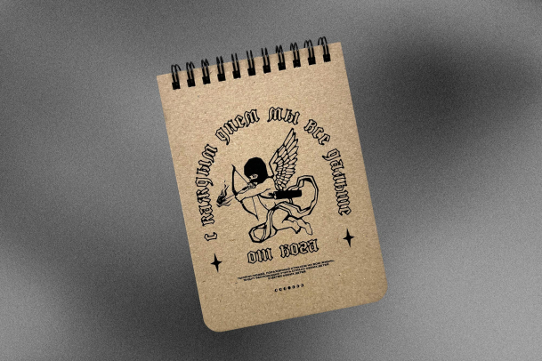 На обложке изображен Купидон: он спрятал лицо в балаклаве, а подпись «С каждым днём мы всё дальше от бога» выполнена в готическом шрифте, добавляя рисунку таинственности.