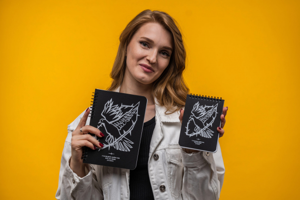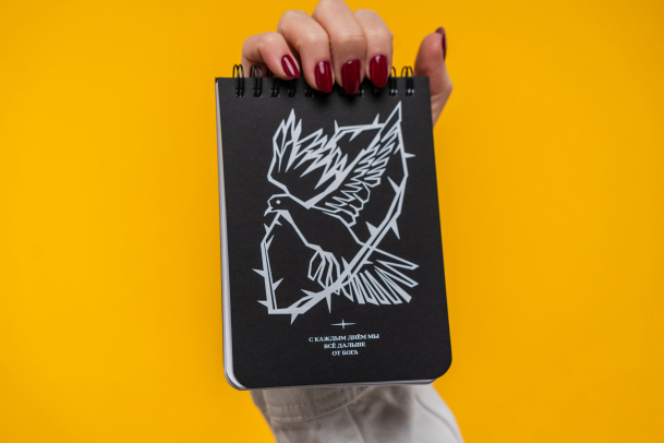 Поэтому он появился на этом блокноте в точку. Блокнот поместится в небольшую сумку, а бумага плотная и не просвечивает. Из скетчбука на пружине удобно вырывать листы, если захочется повесить заметку на стену.