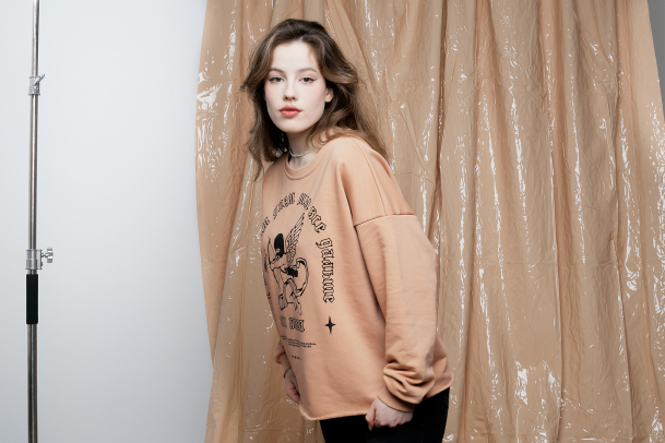 Бежевый оверсайз свитшот сшит из плотной мягкой ткани, он не мнётся и выглядит отлично, где бы ты ни был. Эта кофта свободного кроя и без резинки, она приятно касается кожи и не сковывает движения.