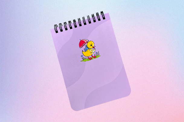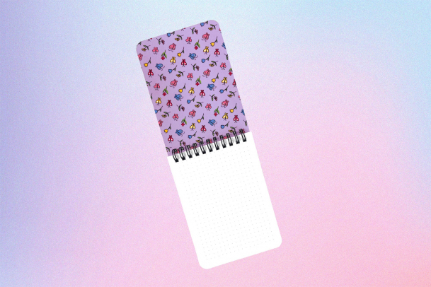 - Блокнот на пружине формата А6, а линовка – в удобную точку. Внутри плотная бумага, которая подойдёт и для записей, и для набросков;