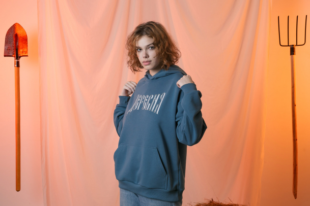 Худи «Деревня» – часть авторской коллекции, выпущенной креативной командой «Мам, купи!». Покупая его, ты получаешь красивую вещь и поддерживаешь локальный бизнес.