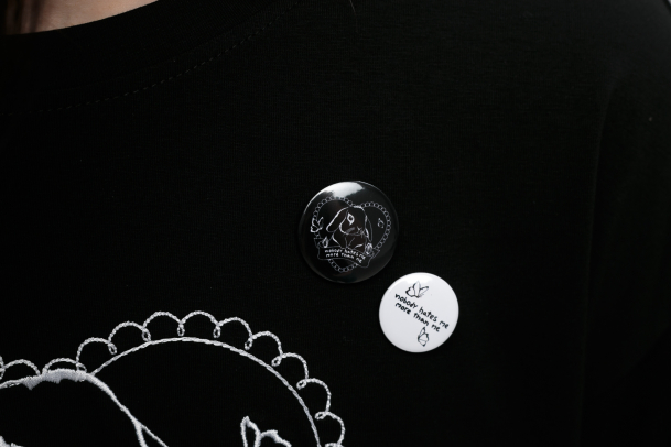 Коллекция «Хейтер» вышла совместно с блогеркой Алиной Манилоун. В своих видео Алина поднимает важные социальные темы, а в уютных влогах делится моментами из своей жизни. Покупая её мерч, вы поддерживаете любимого блогера и получаете отличные аксессуары.