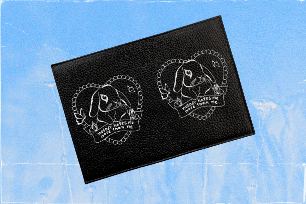 Попробуйте сосчитать: достаньте паспорт, который надёжно спрятан под обложкой из коллекции «Хейтер». Раскройте страницу и рассчитайте возраст. После того, как ответ найдётся, не выпускайте документ из рук, ведь обложка такая приятная на ощупь! Она сшита из натуральной кожи, а принт нанесён прочно, чтобы милый кролик долго радовал вас.