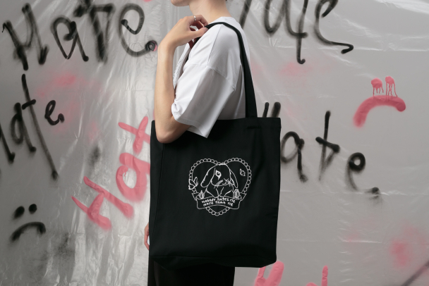 Коллекция «Хейтер» вышла совместно с блогеркой Алиной Манилоун. В своих видео Алина поднимает важные социальные темы, а в уютных влогах делится моментами из своей жизни. Покупая её мерч, вы поддерживаете любимого блогера и получаете отличные аксессуары.