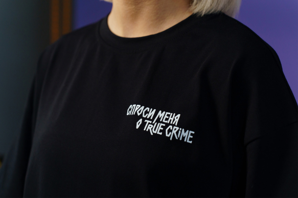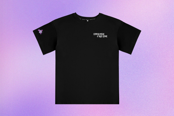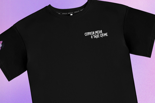 … Кто это – узнаете на тру-крайм канале Маруси Черничкиной, ведь футболка – из её коллаборации с «Мам, купи!». Маруся снимает ролики, в которых раскрывает загадки самых необычных преступлений. Покупая мерч, вы поддерживаете любимого блогера и получаете отличные аксессуары.