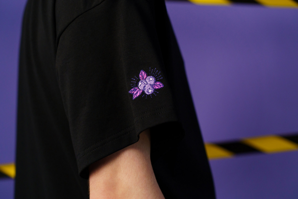 Но будем отвечать исключительно в чёрной хлопковой оверсайз-футболке. Потому что она мягкая, приятная к телу и практически не мнётся. На ней напечатан принт, который не выцветает и не трескается после стирок, а на рукаве вышиты ягодки черники. В общем, Джеффри Дамер…