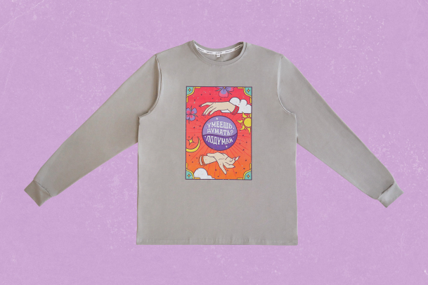 Яркий лонгслив насыщенного серого цвета с неповторимой авторской иллюстрацией. Хлопковый, мягкий, дышащий, универсальный — практичная альтернатива футболке и свитшоту.