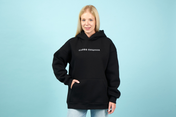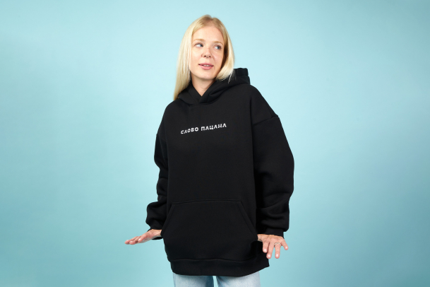 Поэтому мы сшили худи для пацанов, которые не кидают слов на ветер. Кофта свободного кроя сшита из плотной мягкой ткани, которая не мнётся. Принт нанесён крепко: остаётся ярким и не трескается после многочисленных стирок.
