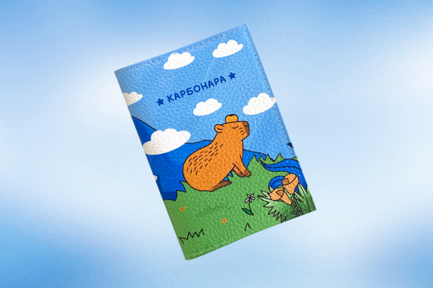 Эта обложка для паспорта сшита из натуральной кожи (не капибары), поэтому очень прочная и прослужит много лет. Сверху мы нанесли принт, который не стирается, выглядит ярко и позволит всем узнать имя твоего любимого животного.