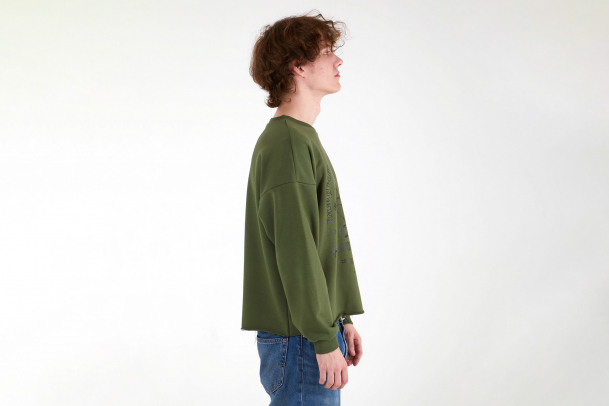 Серый оверсайз свитшот сшит из плотной мягкой ткани, он не мнётся и выглядит отлично, где бы ты ни был. Эта кофта свободного кроя и без резинки, она приятно касается кожи и не сковывает движения.