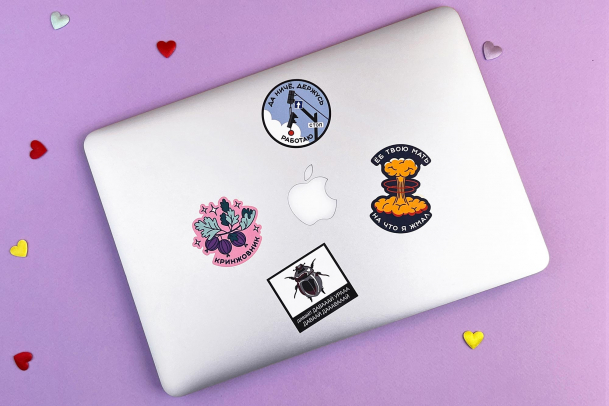 Эти наклейки прочно держатся на компьютерах, смартфонах, зеркалах и других гладких поверхностях. Рисунок не стирается, а если дизайн захочется обновить, то ты сможешь снять стикеры без следов клея.