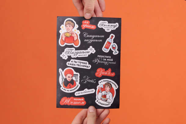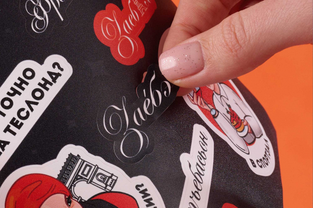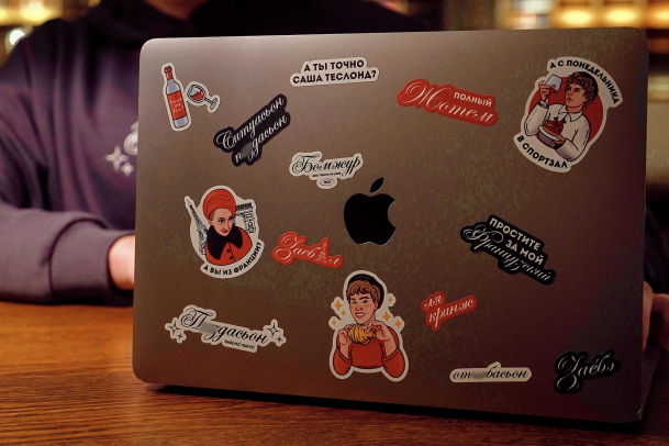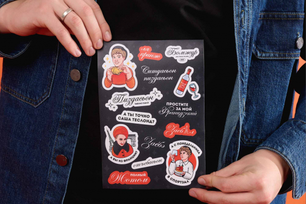 • Стикерпак, напечатанный на виниловой плёнке. Наклейками можно обклеить зеркала, телефон, ноутбук – да что угодно! Рисунки остаются яркими до тех пор, пока не закончится le cringe (очень долго)