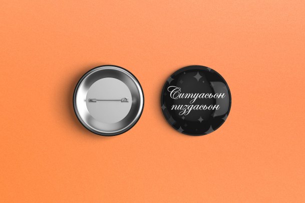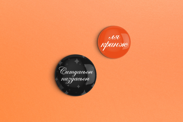 • Два значка на безопасной булавке – 32 мм и 25 мм. Они будут отлично смотреться на пальто, базовом худи или шоппере.